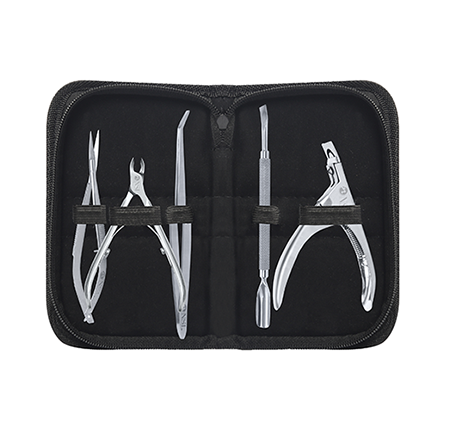 The NSI Implement kit is a set of our 6 stainless steel nail tools in a sleek case for storage.