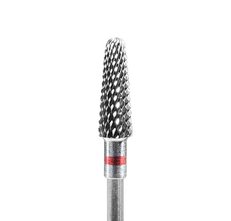 The NSI Tungsten Carbide Cone Barrel nail e file drill bit features a tapered cone shape barrel that can be used on enhancements or the natural nail.