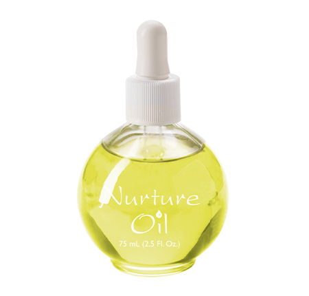 Nurture Oil Cuticle Oil is a Scientifically enhanced blend of 5 therapeutic emollients (including jojoba oil, soy, safflower, wheat germ, and grape seed oils) and vitamins C & E.  Jojoba oil is extremely moisturizing and closely resembles the oil our bodies produce naturally, so it calms skin with little threat of reactions. Grape seed oil is perfect for damaged or stressed tissues, possessing regenerative and restructuring qualities which allow better control of skin’s moisture retention while aiding in skin cell renewal. It’s the perfect finishing touch for any nail service you offer in your salon, to pamper the skin around the nail and your clients’.