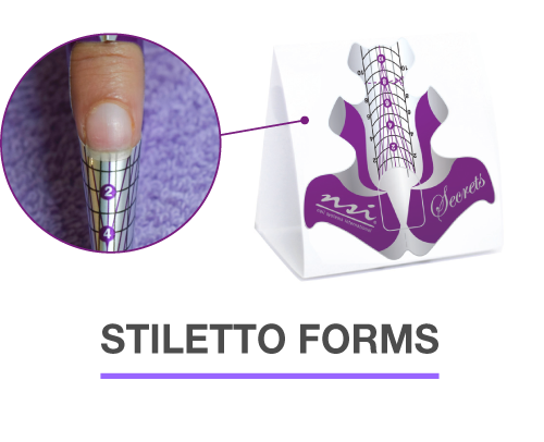 The Secret Stiletto Nail Forms are great for taking your traditional sculpted nails to a new level! These forms are ideal for sculpting any alternative nail shape like the stiletto, edge, gothic almond, lipstick and you can even use them for traditional nail shapes. These are our longest nail forms, great for sculpting longer enhancements without doubling up forms. They are designed with a sculpting grid to keep length and shape consistent from nail to nail. Similar to our Platinum Nail Forms, you can even use these forms for sculpting with gels, as long as you start with a thin clear gel base layer.