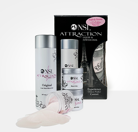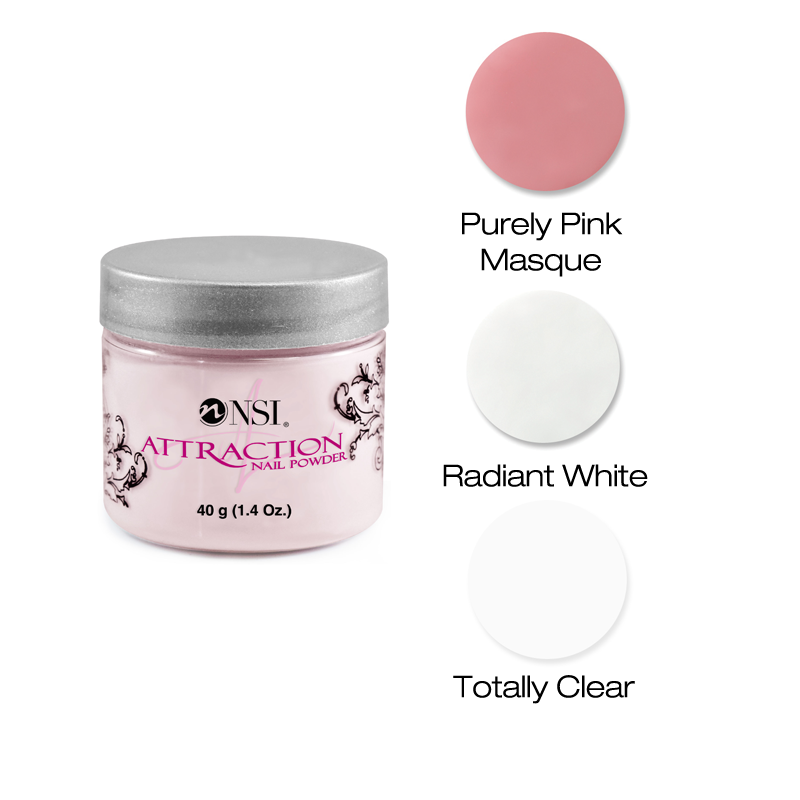 The Attraction Acrylic Nail Enhancement System empowers the nail tech to create captivating enhancements, effortlessly. Highly advanced acrylic nail technology gives the system its unique feel and spring-back-action, while delivering exceptional adhesion, unsurpassed strength and flexibility. The NSI Attraction Acrylic System creates natural-looking, thin liquid and powder nails enhancements with exceptional adhesion, strength, and flexibility. The Attraction Nail Powders are completely color stable and will not fade or discolor. Create stunning acrylic nails with the NSI Attraction Acrylic System – the perfect choice for salon-quality results!