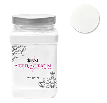 The NSI Attraction Radiant White Acrylic Powder is a pure, bright white for contrasting pink and white nail enhancements. Perfect for color overlays, creating a crisp smile line, or sculpting beautiful white nails.