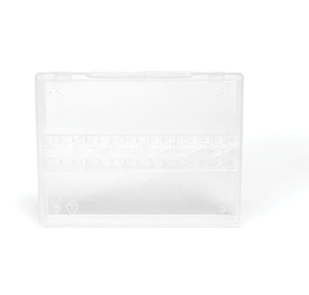 The NSI Drill Bit Display Case is the perfect to organize and store your electric nail file bits. With slots for up to 14 bits, you can easily keep your file bits organized and clean. Once you’ve finished the service, disinfect the nail drill bits and store your dry bits to keep them dust free and organized. The clear display case helps you easily identify the nail drill bits in each case for easy use — you can organize the bits by service type or use. The case is made of sturdy plastic designed with a thin profile that is great for saving space on your workstation and to pack when you travel. The Clear Nail Drill Bit Display Case is an essential tool to pair with your electric nail file.